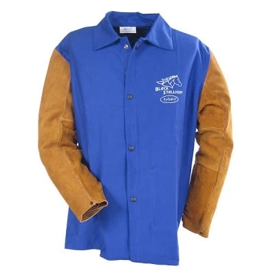 If you’ve ever wondered what it feels like to be John Wayne, have we got the work jacket for you. You may not be a cowboy (howdy, pardner), but you can look like one. Wearing this handsome ~Black Stallion Men’s FRB9 30C BS FR Blue Jacket with Split Cowhide, others won’t be able to help noticing you. And they’ll like what they see.