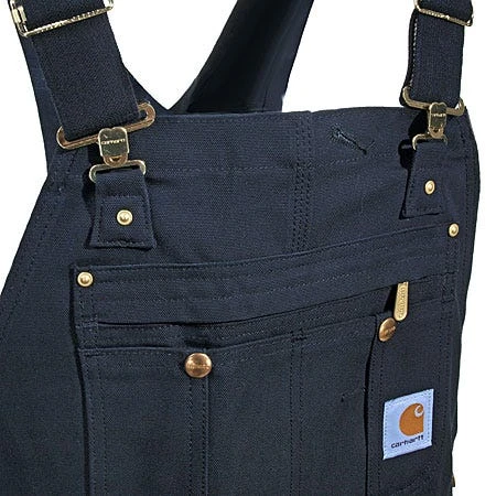 Does dirt stop at waist level? Of course it doesn’t, but work pants do stop at the waist — and that’s why you have so many stained T-shirts. ~Carhartt R37 BLK Black Duck Zip-To-Thigh Unlined Bib Overalls give you coverage all the way up the chest, because your workday is tough from top to bottom.