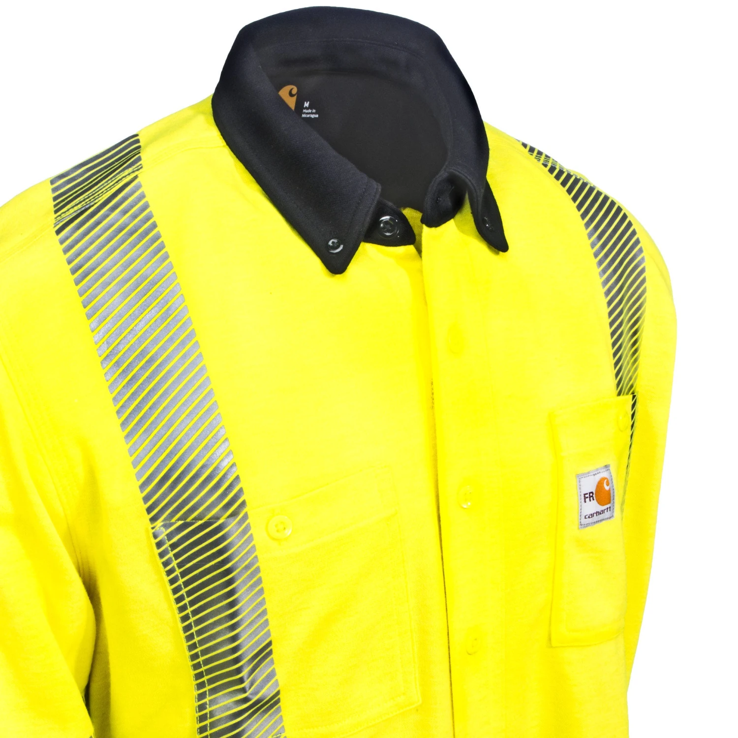 The breathable 6.75-ounce knit FR top is made from 48% modacrylic, 3% Lyocell, and 15% aramid for a light, breathable, and flexible Force Hybrid shirt that brings you the high visibility and moisture-wicking performance you need. Just because you need flame resistance in order to stay safe, that doesn’t mean you have to sacrifice comfort. Using FastDry technology, Carhartt made sure this men’s button down shirt wicks away your sweat and dries quickly so you stay a lot cooler throughout your day. The original fit is roomie so you can move easily in any direction. The dark navy blue color blocking on the button down collar and bottom of the long sleeves hides dirt in these high wear areas, too. Finished off with Stain Breaker technology, this flame-resistant hi vis shirt releases the dirt and stains you collect throughout the day easily in the wash so you start fresh next time. The full -front button down shirt has FR melamine buttons on the front and on the chest pocket as well as on the collar.