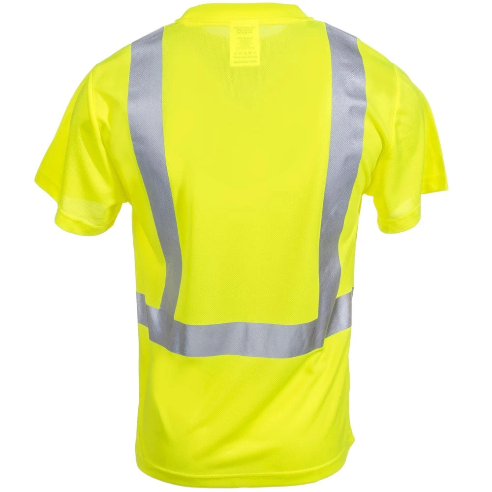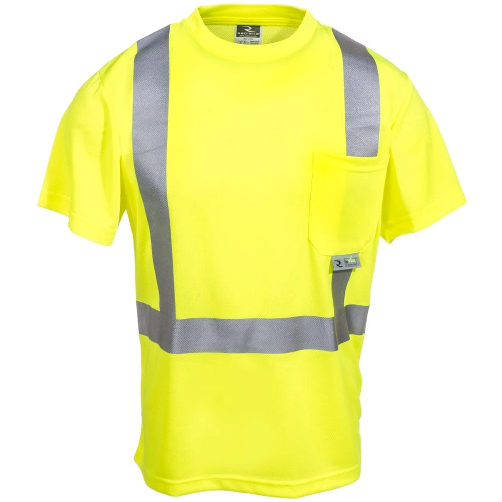 For high daytime visibility, this safety shirt is a hi-vis green. For high nighttime visibility, there are 2” heat transfer reflective tape stripes. This Radians workwear is ASNI Class 2 and 3rd Party Certified to meet or exceed ANSI/ISEA 107-2010 standards.