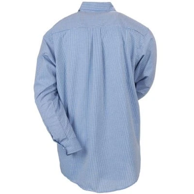 Yarn-dyed blue microchecks give your shirt a look of depth, while seven tortoise shell buttons complete the design to showcase your style. Topstitching on the collar, pocket, and center pleat add strength. The two-piece, lined collar will stay upright – without making you look too uptight.