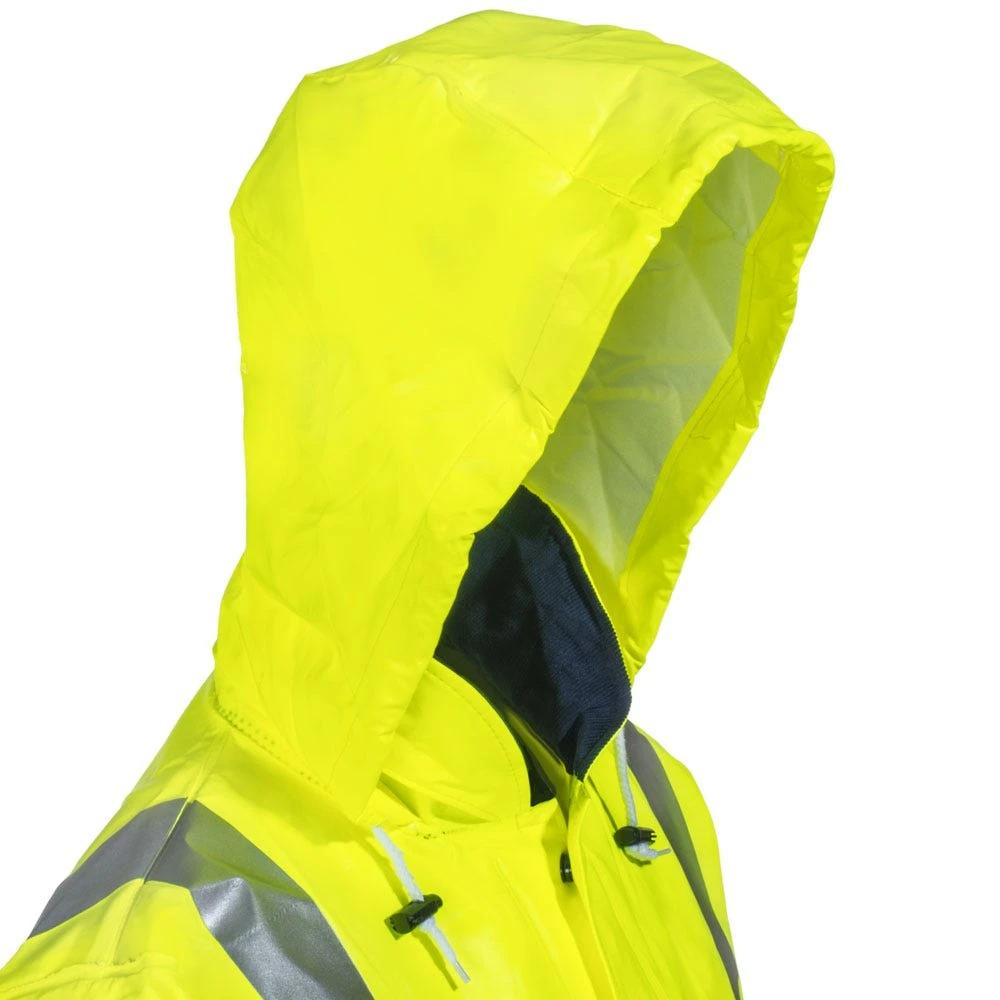 Protection from fire? This ANSI/ISEA 107 Class 3 compliant jacket is flame-resistant thanks to its PVC-coated Nomex material. Nomex is a cousin to Kevlar (the bulletproof jacket material) and is renowned for its flame-resistant properties. This Tingley jacket features patent-pending, Thermo-grid technology that helps block out heat energy. The collar of this yellow jacket is made of flame-resistant corduroy and comes with a roll-a-way hood for comfort and convenience. It conforms to ASTM F1891 for Arc Thermal Performance, ASTM F2733 for Flash Fire Performance, and meets NFPA 70E, Hazardous Risk Category 2. It meets these stringent requirements so you can stay safe on the job.