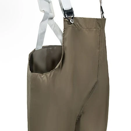 Manufactured from nylon and coated with waterproof neoprene, these olive green overalls provide excellent abrasion protection and resistance to animal fats, certain acids, alcohols, caustic oils, and certain solvents. Neoprene is a lightweight, more flexible material that’s comfortable to wear. The nylon fabric provides excellent strength and durability. Combining the two materials results in one high performing pair of overalls. Definitely not your kid’s overalls!